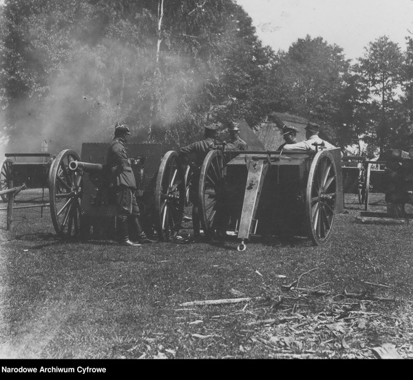 Obsługa zaprzodkowuje 75 mm armaty polowe Schneider wz. 1897
