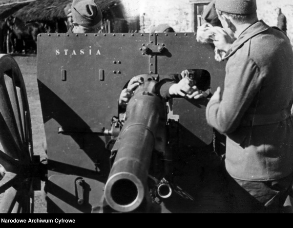 Czyszczenie 75 mm armaty polowej Schneider wz. 1897 nazwanej Stasia
