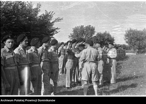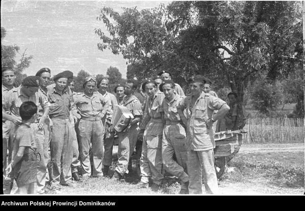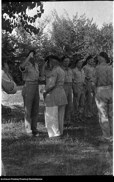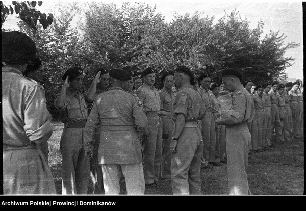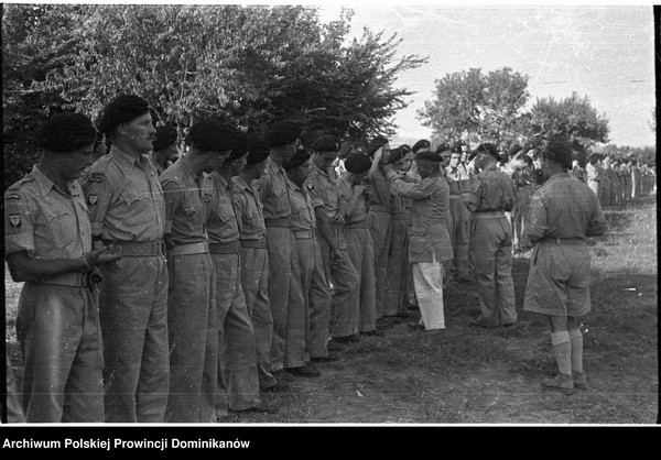 Włochy, miejsce postoju Pułku 4 Pancernego „Skorpion” nad rzeką Cesano. Dekoracja żołnierzy Krzyżem Walecznych przez gen. Bronisława Rakowskiego (drugi od lewej)