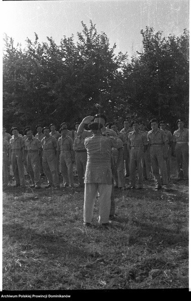 Włochy, miejsce postoju Pułku 4 Pancernego „Skorpion” nad rzeką Cesano. Generał Bronisław Rakowski (odwrócony tyłem) dekoruje por. Zygmunta Szepetta Krzyżem Walecznych