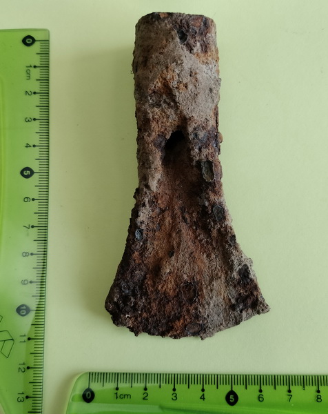 Drugim znaleziskiem jest żelazne ciosło, narzędzie o długości 11 cm i wachlarzowatym ostrzu o szerokości 6 cm. Tuleja o średnicy 2 cm służyła do mocowania styliska. Datowanie tego artefaktu jest trudne, gdyż może on pochodzić z różnych okresów – od czasów rzymskich (II-IV w. n.e.) po wczesne średniowiecze lub okres nowożytny. Różnorodność stylistyczna i techniczna tego typu narzędzi sugeruje ich szerokie zastosowanie przez wieki.
